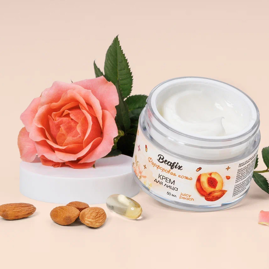 Увлажняющий крем для лица «Juicy peach» позаботится о водном балансе вашей кожи и днем, и ночью. Масло персика и миндаля глубоко питают, устраняют сухость и шелушение, возвращая коже здоровый вид без жирного блеска. Витамины группы B в составе масел выравнивают цвет лица, создавая эффект «фарфоровой кожи». Витамины Е и F активно стимулируют обновление клеток и выработку коллагена, продлевая молодость и предотвращая появление возрастных изменений.